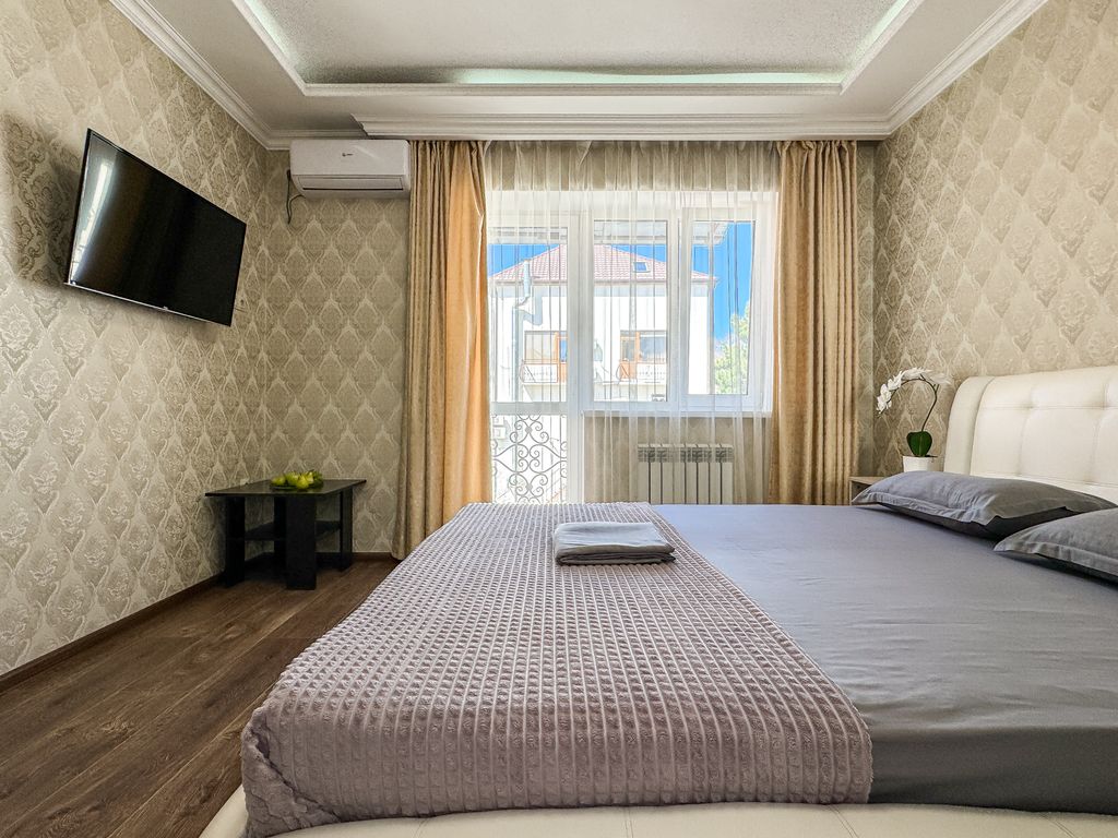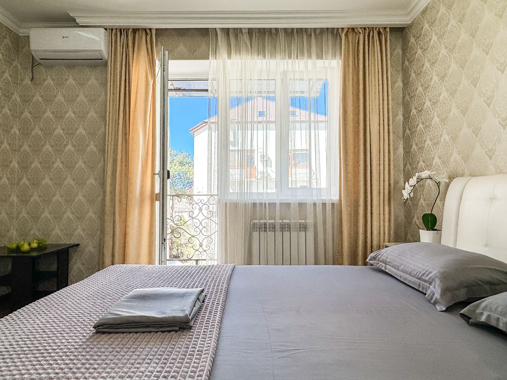 Главное и интересное для вас преимущество — это наше расположение, центр города — все развлечения под рукой и в пешей доступности, 7-10 минут пешком до песочного пляжа 600 метров. Отдельно стоящее здание — 40 номеров разной вместимостью от 2 до 6 гостей. Кондиционер, душ, туалет, балкон (не во всех), телевизор, холодильник, чайник, чашки — обязательные удобства в каждом номере. 12 из 40 номеров — двухкомнатные. Имеется оборудованная кухня, доступ дается индивидуально. Также несколько парковочных мест у входа и на платной стоянке в шаге (300 р. сутки).
