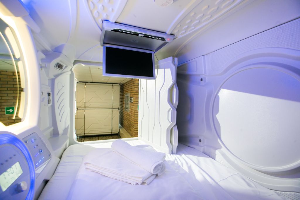 Первый капсульный хостел в Казани! Размещение в комфортабельных капсулах с телевизором, подсветкой, вентиляцией. Ортопедические матрасы и подушки с эффектом памяти сделают ваш сон поистине космическим! Просторные общие зоны с бильярдом, кухней, коворкинг-зоной, домашним кинотеатром!