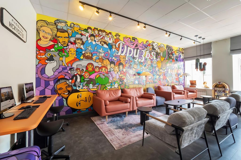 Хостел «Друзья на Восстания» находятся в двух шагах от главной магистрали Петербурга - Невского проспекта. Московский вокзал находится в 5-7 минут ходьбы от хостела, а до большинства достопримечательностей города тоже можно добраться пешком или проехав пару остановок на общественном транспорте. Вход в хостел расположен на улице Восстания. Рядом с ним стоит, пожалуй, самая оригинальная и необычная наружная реклама в городе: желтый запорожец, стилизованный под битловскую Yellowsubmarine. На втором этаже за стойкой круглосуточно дежурят администраторы. Гостей «Друзей» радушно встретят, помогут разместиться и дадут необходимую информацию о городе. Рядом ресепшен располагается просторная и уютная гостиная, наполненная любопытными ретро-вещицами и сувенирами советских времен, с мягким кожаными диванами, большим телевизором и настольным футболом. В «Друзьях на Восстания» 37 отдельных номеров, рассчитанных на двух-, трехместное размещение и 8 многоместных комнат. Все номера отличает яркий инт