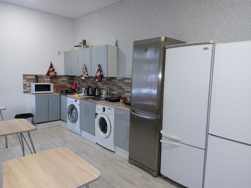 Уютное размещение в четырехместных номерах. Отдельные душевые и санузлы. Просторная кухня со всем необходимым инвентарем(Холодильник, стиральная машина) Семейный номер с собственным санузлом.
