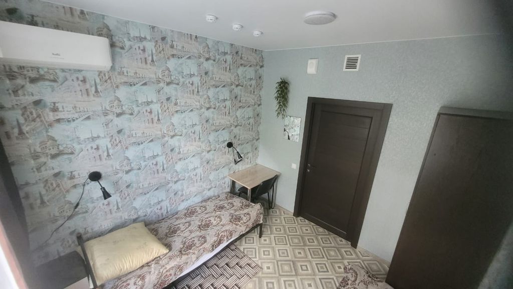 Расположен на 2-ом этаже в пристрое к жилому дому, в шаговой доступности от остановок общественного транспорта и в 3.5 км от центра города. На 1 ом этаже расположен магазин Пятерочка. Номерной фонд на 8, 4, 2 человека, номера с кондиционером, Wi-Fi, просторная оборудованная всем необходимым кухня, с/узлы и душевые на этаже. Количество номеров в отеле: 9