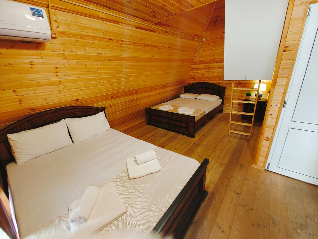 До моря 1 минута ходьбы! Небольшая и уютная база отдыха «Кокос» на самом берегу моря ждёт своих гостей! Хозяева знают как сделать ваш отдых комфортным и прикладывают все усилия, чтобы вы уехали счастливые и наполненные положительными эмоциями! На территории комплекс бассейнов для всей семьи и лежаки рядом, кафе и места для отдыха по всей базе, развлечения для детей и взрослых, анимационная программа для любого возраста, детские принадлежности, которые пригодятся для отдыха с детьми. А для проживания вы можете выбрать наиболее подходящие эко домики, которые у нас разных категорий и разной вместимости, в том числе домики со своими мини-кухнями, террасами и балконами. Бесплатные услуги для наших гостей — бассейн с подогревом и лежаки рядом — кинотеатр под открытым небом — парковка — общая кухня — крытые беседки — детский игровой лабиринт — детская анимация — мастер-класс по приготовления сахарной ваты — настольные игры — надувные мячи, детский дартс, кольцеброс — мангал и принадлежнос