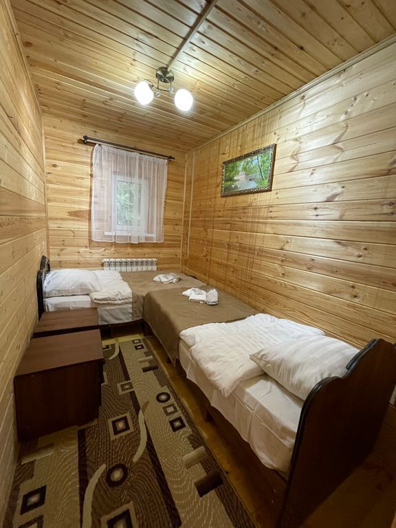 Представляем вашему вниманию базу отдыха Forest Yard с номерным фондом 85 человек, в том числе: семейный стандарт (до 5 человек) - 12 номеров, площадь 32кв м2, (двуспальная кровати в одной комнате, две раздельные односпальные кровати в другой, диван-малютка раскладной); трехместный стандарт - 4 номера, площадь 22кв м2, (2 номера - двуспальная кровать + односпальная кровать, 2 номера - три односпальные кровати); двухместный стандарт - 4 номера, 17кв м2, (одна двуспальная кровать); семейные люкс - площадь 44кв м2, (две спальни с двуспальными кроватями, холл, угловой диван); двухместный люкс - площадь 25кв м2, (две комнаты: спальня и холл с раскладным диваном); отдельно стоящий домик - площадь 54кв м2 (две большие спальни с двуспальными кроватями, холл с раскладным диваном, кухонная зона, раковина, кухонный шкаф с электрической печкой); апартаменты - площадь 60кв м2, (три спальни с двухспальными кроватями и и два санузла, большой холл с угловым диваном); Во всех номерах имеются бал