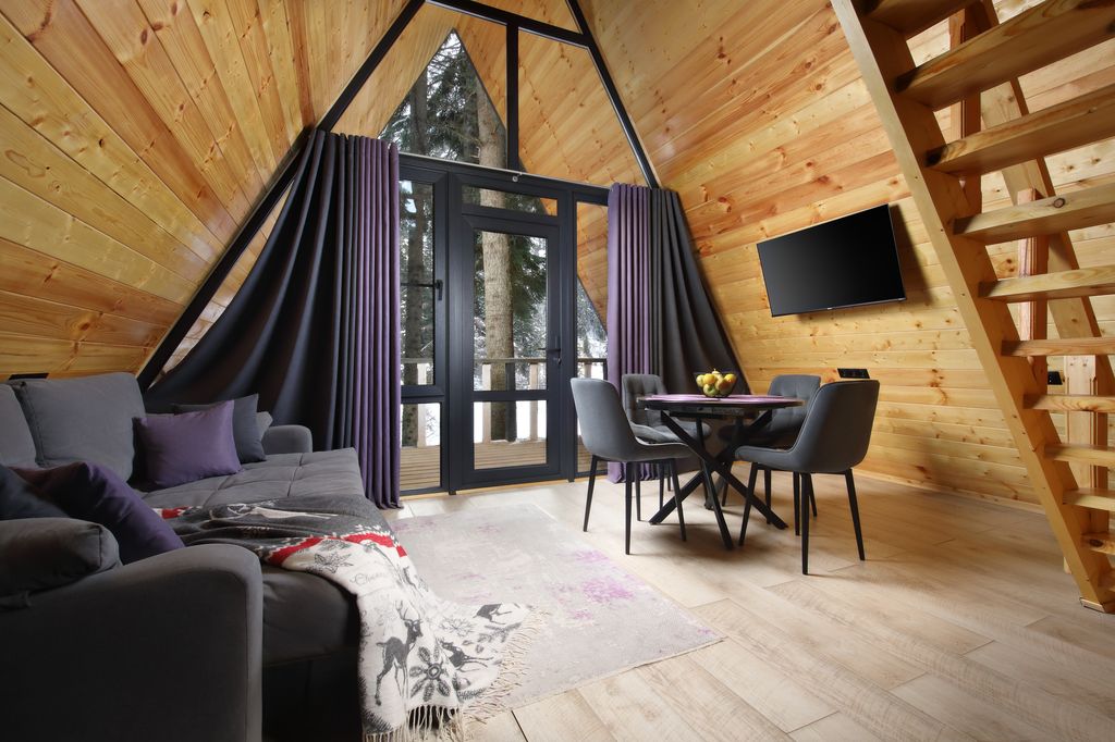 Эко‑дома «Пихта‑парк» расположились в самом популярном и притягательном направлении курорта – Софийские поляны. Среди вековых пихт вы найдёте уютные срубовые дома в традиционном стиле, просторные А‑фреймы, домики с персональной террасой и мангальной зоной. Внутри всё для комфортного отдыха: кухонная зона, комфортные спальные места, теплый пол, собственный санузел и многое другое. А после прогулок среди ледников, озер и водопадов вас ждёт расслабление в СПА‑зоне с баней и турецким хаммамом. Здесь царит особая атмосфера спокойствия, силы и безмятежности.