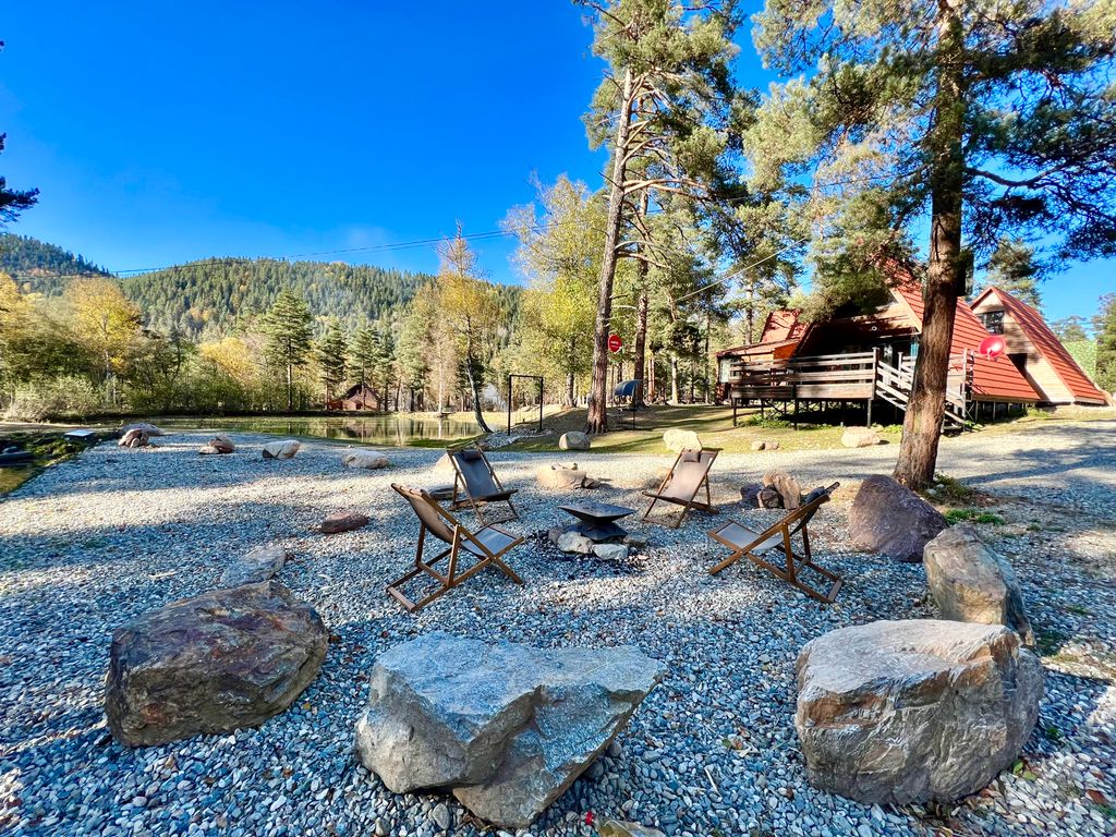 База отдыха «София-Таулу Архыз» - идеальное место для спокойного отдыха в сосновом лесу на берегу горного озера. Территория базы - 3 га. Расположена база отдыха на софийской поляне. Это одно из самых живописных мест Архыза, у слияния двух красивейших горных рек – Псыш и Софии. Наша база подойдёт как для романтического или семейного отдыха, так и для компаний друзей. На территории «София-Таулу Архыз» имеется небольшой продуктовый магазин, питание (room-service), баня, спортивные площадки (для игры в волейбол и мини-футбол), детская площадка, качели, горка, батут и озеро «Таулу», вокруг которого уютно расположились три а-фрейма и домик с собственной баней. Домики оборудованы кухней со всей необходимой посудой, просторными террасами с зоной отдыха и мангалами. Вместимость домиков от 4-х до 7-ми гостей, площадь от 52 до 112 кв м. Расстояние от "София-Таулу Архыз": - До с. Архыз - 5 км; - До канаток/горнолыжных трасс пос. Романтик - 5 км; - До горки для катания на санках/