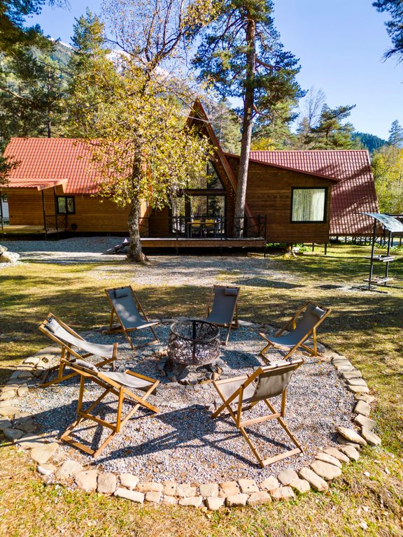 База отдыха «София-Таулу Архыз» - идеальное место для спокойного отдыха в сосновом лесу на берегу горного озера. Территория базы - 3 га. Расположена база отдыха на софийской поляне. Это одно из самых живописных мест Архыза, у слияния двух красивейших горных рек – Псыш и Софии. Наша база подойдёт как для романтического или семейного отдыха, так и для компаний друзей. На территории «София-Таулу Архыз» имеется небольшой продуктовый магазин, питание (room-service), баня, спортивные площадки (для игры в волейбол и мини-футбол), детская площадка, качели, горка, батут и озеро «Таулу», вокруг которого уютно расположились три а-фрейма и домик с собственной баней. Домики оборудованы кухней со всей необходимой посудой, просторными террасами с зоной отдыха и мангалами. Вместимость домиков от 4-х до 7-ми гостей, площадь от 52 до 112 кв м. Расстояние от "София-Таулу Архыз": - До с. Архыз - 5 км; - До канаток/горнолыжных трасс пос. Романтик - 5 км; - До горки для катания на санках/