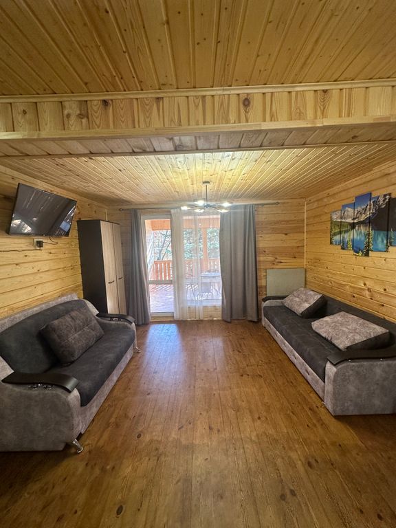 Комфортабельные домики для семейного отдыха или компании Уютные экологически чистые номера с выходом на веранду в окружении вековых сосен и буковых деревьев Номера оснащены двухспальной кроватью, диваном, оборудованной кухней, микроволновкой, холодильником. Совместный санузел с душевой кабиной.