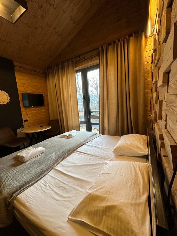 База отдыха Tishina расположена в лесу на просторной территории 1Га. Не доезжая самого поселка Архыз 2 минуты. До подъемников 25 минут езды. За нами только лес, горы и ручьи. На территории находится: - 4 отдаленных друг от друга мангальных зоны в свободном доступе - кастровая шача с 8ю креслами кентуки - качели - небольшая детская площадка - вайфай свободный по всей территории Каждый из 11ти номеров в Тишине не похож друг на друга и имеет свою особенную изюминку в интерьере. Банька имеется у наших соседей в 10ти метрах. Кафе у нас нет, но есть небольшой магазинчик.
