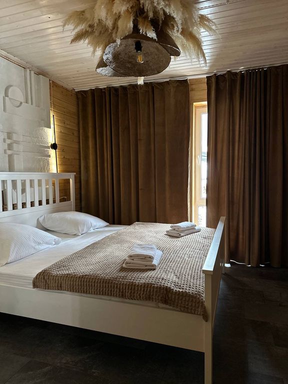 База отдыха Tishina расположена в лесу на просторной территории 1Га. Не доезжая самого поселка Архыз 2 минуты. До подъемников 25 минут езды. За нами только лес, горы и ручьи. На территории находится: - 4 отдаленных друг от друга мангальных зоны в свободном доступе - кастровая шача с 8ю креслами кентуки - качели - небольшая детская площадка - вайфай свободный по всей территории Каждый из 11ти номеров в Тишине не похож друг на друга и имеет свою особенную изюминку в интерьере. Банька имеется у наших соседей в 10ти метрах. Кафе у нас нет, но есть небольшой магазинчик.
