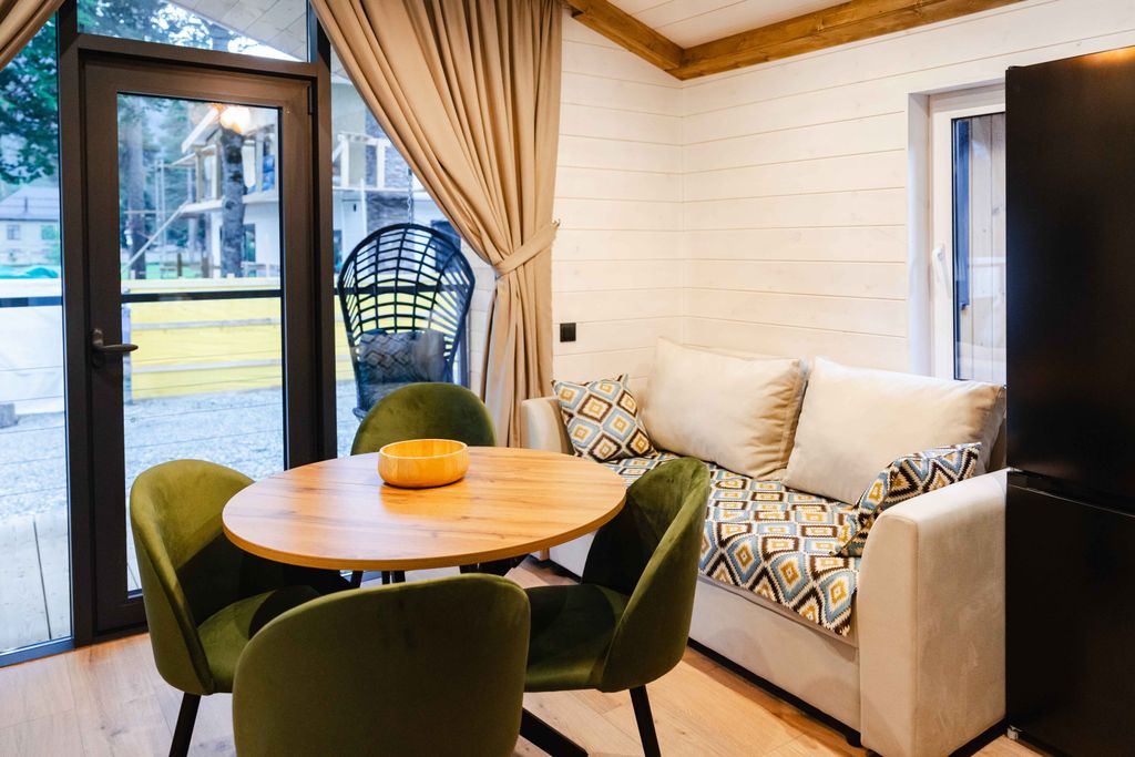 Добро пожаловать на Базу отдыха "Айвазовский"! Наш комплекс расположен в живописном поселке Архыз, среди величественных горных пейзажей, и предлагает комфортный отдых в уютных современных домиках и апартаментах. Каждое жилье оснащено всем необходимым для вашего удобства, включая полностью оборудованную кухню, комфортную мебель и современные удобства. Вы сможете насладиться чистым горным воздухом, потрясающими видами и теплой атмосферой, созданной для незабываемого отдыха. Для гостей сервируется завтрак по системе "шведский стол". На территории вас ждут: бесплатная охраняемая парковка, Wi-Fi, детская площадка, зона с мангалом и костром, батут, беседка и гамаки для расслабления.
