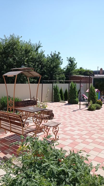В большом дворе 4 однокомнатных номера на 3 и 4 человека и 1 двухкомнатный номер на 6 человек + доп места. В номерах 2х спальная, 1спальная или 2х ярусная кровать, сплит-система, телевизор, москитная сетка, санузел. Кухни летние: 3 индивидуальные и 1 на 2 номера. В общем пользовании детская площадка, мангал, с/м автомат по графику, сушилка для белья, утюг, гладильная доска, свч, вай-фай, место для курения, парковка.