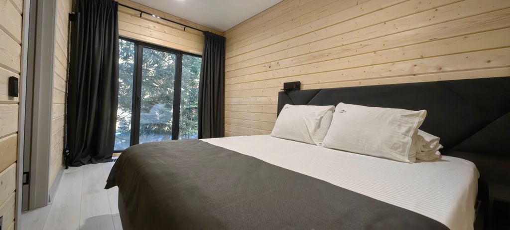 «Монте Виера парк Архыз» - современный отель с отдельными дизайнерскими домами на берегу горной реки, в окружении леса и гор. До горнолыжных склонов - около 5 минут на автомобиле, в пешей доступности - Софийская поляна с прогулками, квадроциклами, снегоходами и конными маршрутами. Отель состоит из уютных двухэтажных домов в стиле A-frame, а также: - Домов с панорамной террасой на крыше, - Уединённых домов над рекой, - Коттеджей с банным чаном на террасе, - Домов с ванной прямо в спальне — идеальный вариант для романтического отдыха. Панорамные окна открывают виды на реку, лес и горы, а натуральные материалы и тёплый свет создают ощущение уюта и уединения. Заезд: с 15:00 до 21:00 (поздний - по согласованию). Выезд: до 11:00. Дети до 4 лет - бесплатно без предоставления отдельного места. Уборка каждые 4 дня, дополнительная - 2 500 ₽. Каждый дом полностью оборудован: - Тёплые полы, - «Умный дом» с Алисой, - Wi-Fi, Smart TV, кондиционер, - Премиальная сантехника с тропическим
