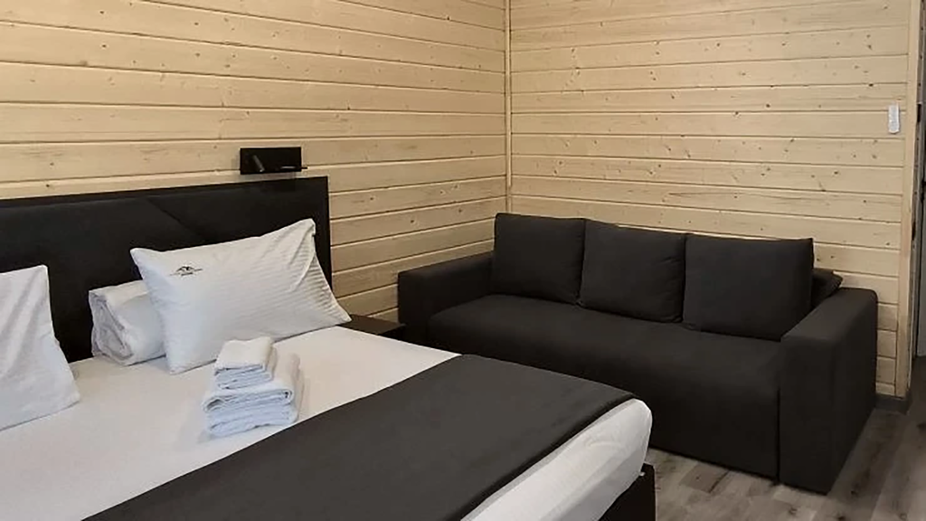 «Монте Виера парк Архыз» - современный отель с отдельными дизайнерскими домами на берегу горной реки, в окружении леса и гор. До горнолыжных склонов - около 5 минут на автомобиле, в пешей доступности - Софийская поляна с прогулками, квадроциклами, снегоходами и конными маршрутами. Отель состоит из уютных двухэтажных домов в стиле A-frame, а также: - Домов с панорамной террасой на крыше, - Уединённых домов над рекой, - Коттеджей с банным чаном на террасе, - Домов с ванной прямо в спальне — идеальный вариант для романтического отдыха. Панорамные окна открывают виды на реку, лес и горы, а натуральные материалы и тёплый свет создают ощущение уюта и уединения. Заезд: с 15:00 до 21:00 (поздний - по согласованию). Выезд: до 11:00. Дети до 4 лет - бесплатно без предоставления отдельного места. Уборка каждые 4 дня, дополнительная - 2 500 ₽. Каждый дом полностью оборудован: - Тёплые полы, - «Умный дом» с Алисой, - Wi-Fi, Smart TV, кондиционер, - Премиальная сантехника с тропическим