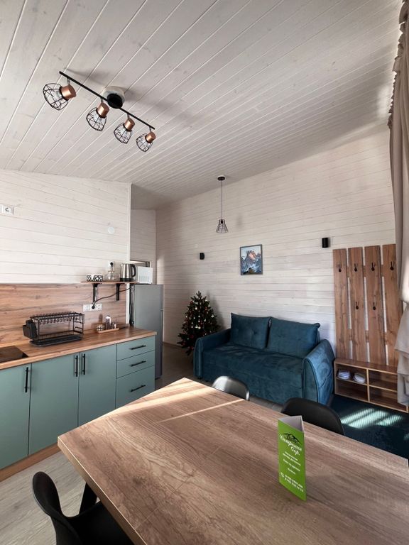 Симфония гор находится в центре поселка и в тоже время находится в тихом месте у подножия горы, рядом лес, через который идет тропа на Баритов водопад. Вашему взору откроются виды на горы и голубое небо!