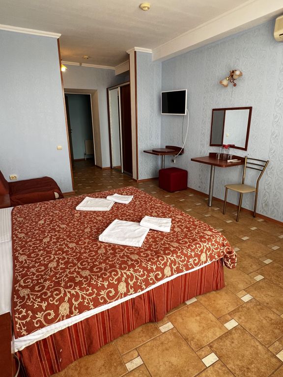 Пансионат «Пляж» — отдых прямо на берегу моря! Если вы мечтаете просыпаться под шум волн — добро пожаловать в пансионат «Пляж», расположенный непосредственно на пляже, всего в 186 метрах от кромки моря! Это настоящая первая линия: вы буквально находитесь на песке. Что ждёт наших гостей: Большой бассейн с подогревом — 180 м³ чистой и тёплой воды каждый день. Вкусный домашний шведский стол — завтраки и ужины, приготовленные с любовью. Номера с прямым или боковым видом на море — уют, комфорт и вид на закаты. В каждом номере: кондиционер, телевизор, холодильник, сейф, фен, чайник, душ и туалет. Собственная стоянка, зеленый дворик, детская площадка, мангальная зона и отдельный детский бассейн. Мы создаём атмосферу настоящего отдыха — заботимся о каждом госте с момента бронирования до окончания поездки. Пансионат «Пляж» — это не просто жильё у моря, это ваше тёплое место уюта и заботы на самом берегу Чёрного моря.