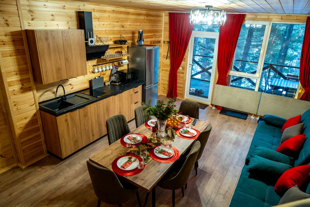 Добро пожаловать в bal house arkhyz — новый двухэтажный дом с мансардой, расположенный в живописном сосновом лесу. Этот премиальный объект предлагает три уникальных номера, каждый из которых оснащен всем необходимым для вашего комфортного и роскошного отдыха. Это уютные двухэтажные номера с гостиной-кухней с двумя диванами (по 4 спальных места), кухонные принадлежности (кастрюли, казаны, сковороды). Две спальни с кроватями и кресло-кроватью (по 3 спальных места). Две ванные комнаты на каждом этаже (фен, одноразовые принадлежности, полотенца, стиральные машины). Большая терраса, мангальная зона, детская площадка. Удобства: - Вся необходимая кухонная утварь для приготовления пищи. - ЖК-телевизоры в каждом номере. - Высокоскоростной Wi-Fi для вашего удобства. - Фен и гладильная доска для вашего комфорта. Спальные места: - Два номера рассчитаны на 10 спальных мест каждый. - Один номер на первом этаже вмещает до 5 человек. Особенности: - Большие номера с мансардой, включающие по