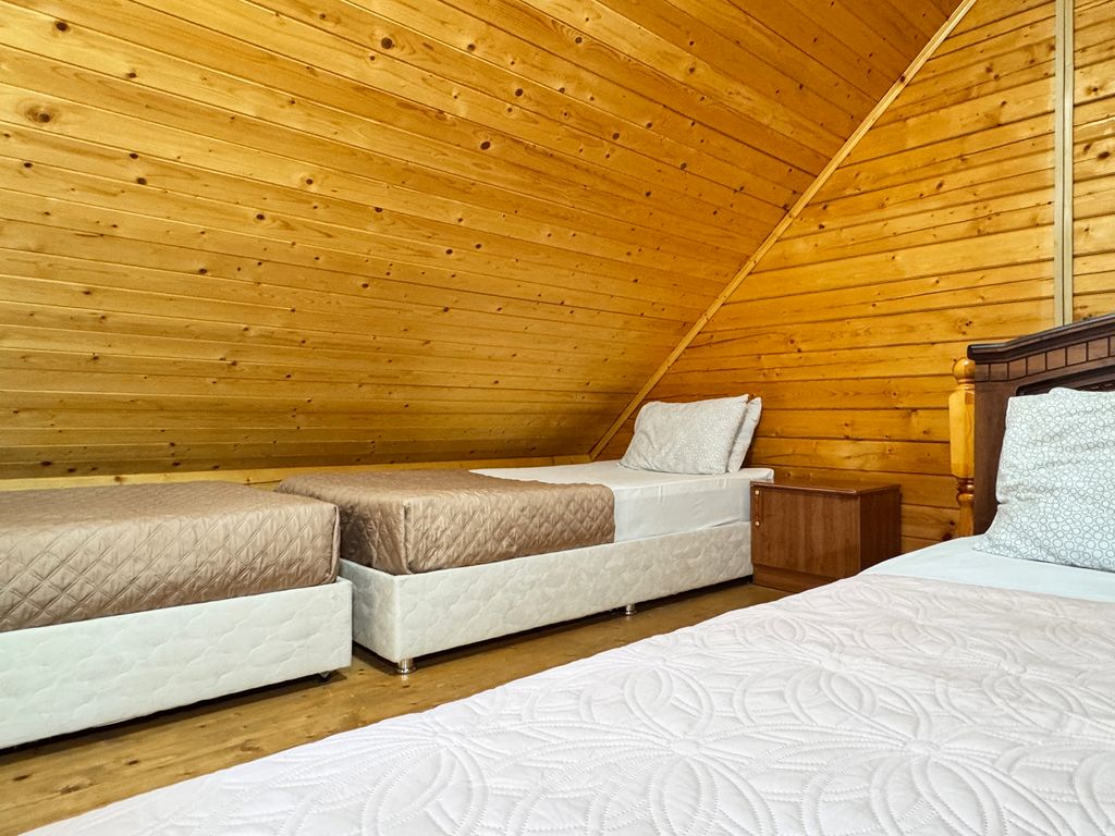 Представьте: вы стоите на пороге своего уютного домика, вдыхаете свежий морской бриз, а впереди – целый день, наполненный солнцем, смехом и безмятежностью. Добро пожаловать в «Арабеску» – место, где мечты об идеальном отпуске становятся реальностью! Мы находимся всего в нескольких шагах от ласковых волн и золотистого песка. Представьте, как вы выходите из номера и уже через пару минут оказываетесь на пляже, готовые окунуться в освежающее море. Наша территория – это настоящий оазис спокойствия и развлечений. Тут вы найдете и укромное место в уютной беседке, чтобы насладиться тишиной, и сможете собраться всей семьей у мангала, чтобы приготовить ароматный ужин под звездным небом. Для самых маленьких гостей у нас есть игровая площадка, где смех и радость не умолкают ни на минуту. Наши аниматоры позаботятся о том, что бы вашим деткам было весело и интересно. В жаркий день можно в одном из наших двух бассейнов – для взрослых и для малышей. В нашей столовой вас ждет домашняя кухня, где каж