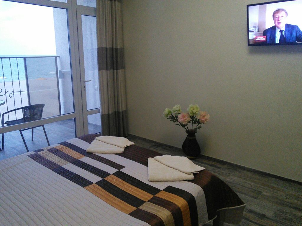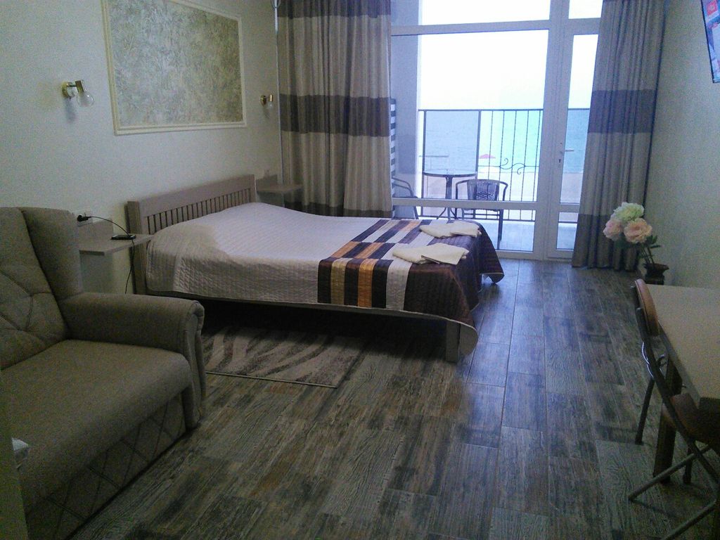 Современный 4-этажный коттедж расположен в 11 м от пляжа. Все номера площадью 30 кв. м. С большими балконами и видом на море из каждого номера. Без возможности самостоятельного приготовления пищи, только подогрев в микроволновой печи в общем пользовании на этаже. Все номера со всеми удобствами в номере, современного дизайна. Комфортная современная мебель, кровати с ортопедическими матрасами. Из спальных мест- двуспальная кровать и раскладной 1, 5ный диван. Максимально возможное размещение -3(4) человек в номере. Бесплатное пользование микроволновой печью и гладильной доской с утюгом, платно- стиральной машинкой-автоматом Платная охраняемая автостоянка в 170 м от гостевого дома. С животными не принимаем.