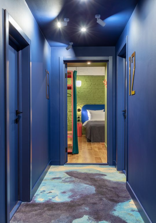 П 17 Отель расположен в самом центре Москвы, в шаговой доступности от Кремля. На расстоянии вытянутой руки находятся основные объекты культурной и деловой жизни. Особое внимание мы уделили цвету и деталям, при создании интерьера вдохновлялись идеями русского конструктивизма. Индустриальные элементы стеллажной системы эффектно контрастируют с уютным велюром. Винтажные светильники 60-х годов из молочного стекла придают атмосфере камерность, а яркие стулья и кресла из стран Варшавского договора придают жизнерадостности. При всей своей аутентичности каждый номер современно оснащен всем необходимым для комфортного пребывания: приточно-вытяжная система вентиляции, немецкая сантехника, натуральный дубовый пол, smartTV, чайная станция и кофемашина в каждом номере.