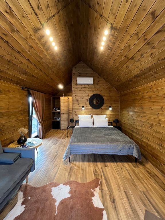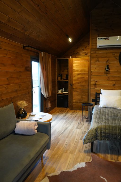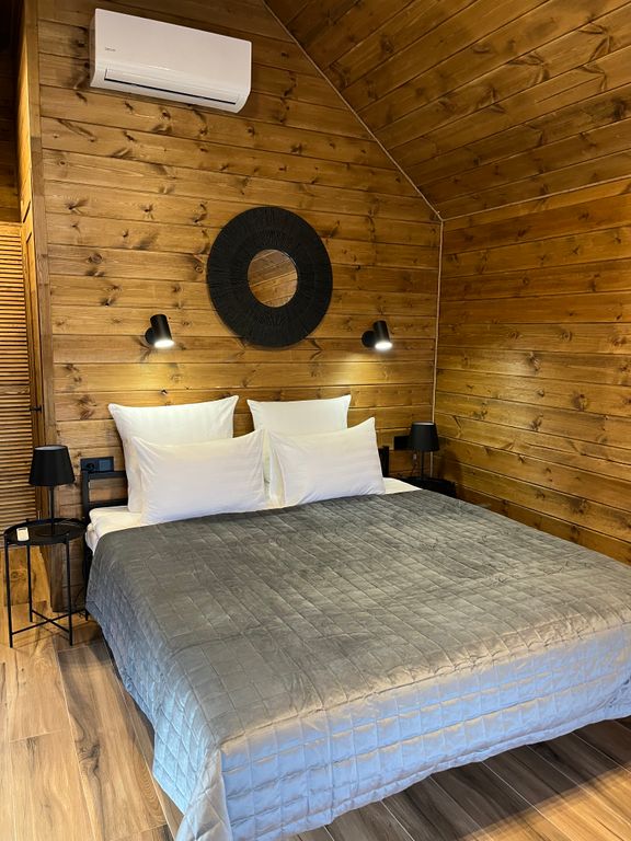 Территория apparadise glamping & spa — это действующее фермерское хозяйство, которое занимается выращиванием яблок, винограда и рыбы. Идея построить глэмпинг на унаследованной земле родилась не сразу, а лишь после ежегодного цветения сада — захотелось поделиться этой красотой с другими людьми. Так на территории появились первые пять tent-house (дома палаточного типа), которые сразу же стали пользоваться большим спросом среди проживающих. Далее добавились дома a-frame, костровая зона у озера, вечерний кинотеатр под звёздным небом, лабиринт из виноградника для прогулок и spa-комплекс в 600 кв. м. Spa-комплекс заслуживает отдельного внимания — это место полного релакса и расслабления в самом сердце яблоневого сада. Включает в себя: русскую баню, альпийскую солёную сауну, джакузи с гидромассажем, бочку-фурако, зону отдыха с детокс-напитками у камина. Всё вышеперечисленное входит в стоимость проживания и безлимитно по посещению. Также гостю доступно: рыбалка на озере (удочки и пр