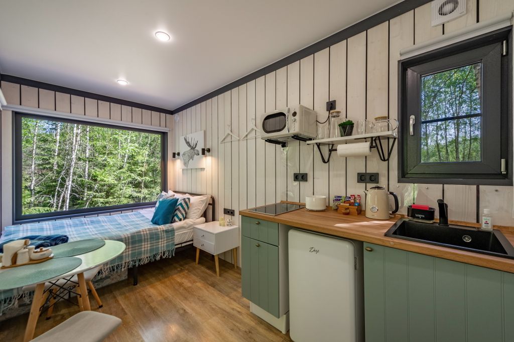 «След Лося» - это новый, современный глэмпинг в скандинавском стиле, расположенный в живописном лесу, вдали от шумной суеты мегаполиса. Здесь безмятежность и спокойствие нетронутой природы сочетаются с комфортом уютных загородных домиков, предназначенных для круглогодичного проживания. Глэмпинг расположен в деревне Анненка, в 25 км от г. Клин. Ближайший аэропорт Шереметьево в 85 км. В глэмпинге 9 домиков двух категорий: 4 двухместных небольших коттеджа и 5 четырехместных коттеджа. В каждом домике есть полностью оборудованная кухня, ванная комната с необходимыми косметическими средствами, регулируемые батареи и теплый пол, питьевая бутилированная вода, Wi-Fi, собственная зона мангала со столом и скамейками, уличная терраса. Дополнительно гостям доступны настольные игры, проектор, аренда караоке, баня и купель GoodWood, прокат спортинвентаря и многое другое. Территория глэмпинга круглосуточно находится под охраной и патрулируется. Правила размещения с животными: Размещение с животными в