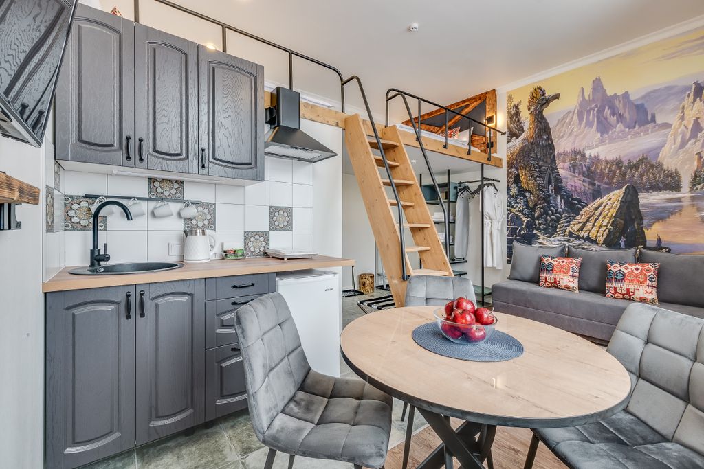 Sokroma «Гиперборея» - это новый современный отель категории 3*, расположенный в городе Кировск Мурманской области, возле старейшего горного массива Хибины и всего в 10 минутах ходьбы от популярного Горнолыжного Курорта "Большой Вудъявр". Внутренний интерьер отеля неразрывно связан с историей и легендами покорителей Севера. В сочетании с современными элементами, в интерьере переплетены скандинавские, древнеславянские и греческие мотивы, поэтому дизайн отеля нельзя отнести к какому-то определенному стилю. Мы постарались вписать экзотику древнегреческого мифа в суровую красоту Севера. Sokroma «Гиперборея» – это 45 комфортабельных номеров-студий. На выбор гостям предоставляются стандартные и двухуровневые номера. В каждом номере Вас ждут: Кухня, где Вы найдёте необходимую технику и посуду для приготовления любимых блюд прямо в номере; Спальная зона с ортопедическим матрасом. В двухуровневых номерах спальня располагается на верхнем уровне; Гостиная зона с телевизором и обеденны