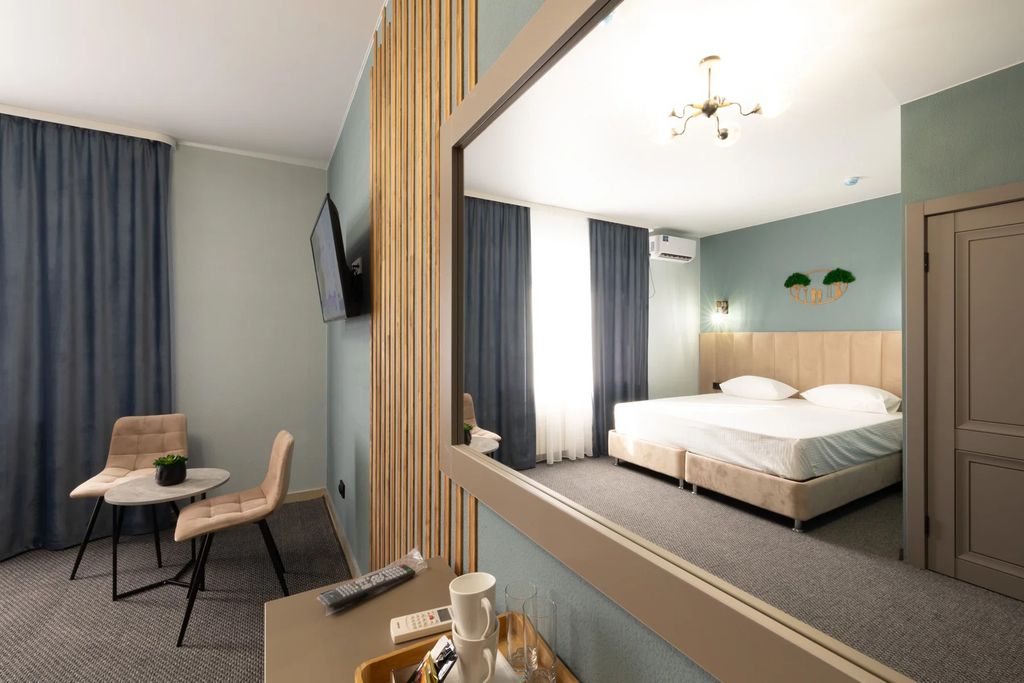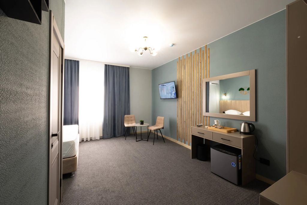 Мы находимся в самом центре города Минеральные Воды в сквере Надежда. 4 км до аэропорта им. Лермонтова. На выезде на ФД Кавказ (Ростов-Баку) 100 м. Расстояние до основных городов курортов КМВ: Пятигорск 18 км Кисловодск 46км Ессентуки 27 км Железноводск 10 км Из окон нашей гостиницы открываются прекрасные виды. С одной стороны виден Собор Покрова Пресвятой Богородицы, с другой - живописная гора Змейка. Предусмотрено: парковка, wi-fi, многоканальное телевидение, кондиционеры, письменный стол, москитные сетки, холодильник*, фен, душ и необходимые гигиенические принадлежности, халаты, тапочки и полотенца, чайник, кофе, чай, бутилированная не газированная вода в каждом номере, электронные замки, зона для курения, зона столовой доступна круглосуточно, кулер с горячей и холодной водой на каждом этаже и в столовой.