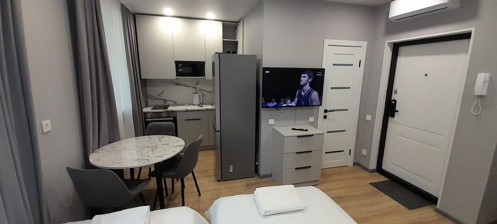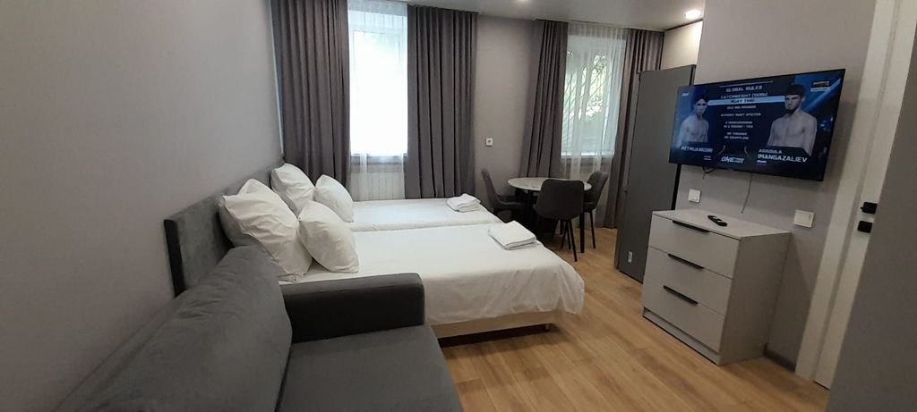 Новый апарт-отель в самом сердце исторического центра Казани готов встречать своих гостей. Отличительной особенностью апарт-отеля являются роскошные кровати размера king size (200*200 см) для пар, а для командировочных 2 широкие односпальные кровати (100 см. ). Плотные шторы блэк-аут и отличная звукоизоляция позволят вам выспаться, тк мы точно знаем, что комфортный сон особенно важен для восстановления сил в путешествиях и командировках. Каждый номер оборудован кухонной зоной с полноразмерным холодильником, электрической плитой, духовым шкафом, свч-печью, чайником, набором посуды, приборов, утвари и обеденным столом с мягкими стульями. Для комфорта наших гостей в ванной комнате установлены душевая кабина с тропическим и ручным душем, стиральная машина, зеркало с подсветкой и электрический полотенцесушитель. Телевизоры с диагональю 52, кабельное тв (более 100 каналов) и высокоскоростной wi-fi, созданы все условия для продуктивной работы, развлечений и поиска новых маршрутов. Расположени