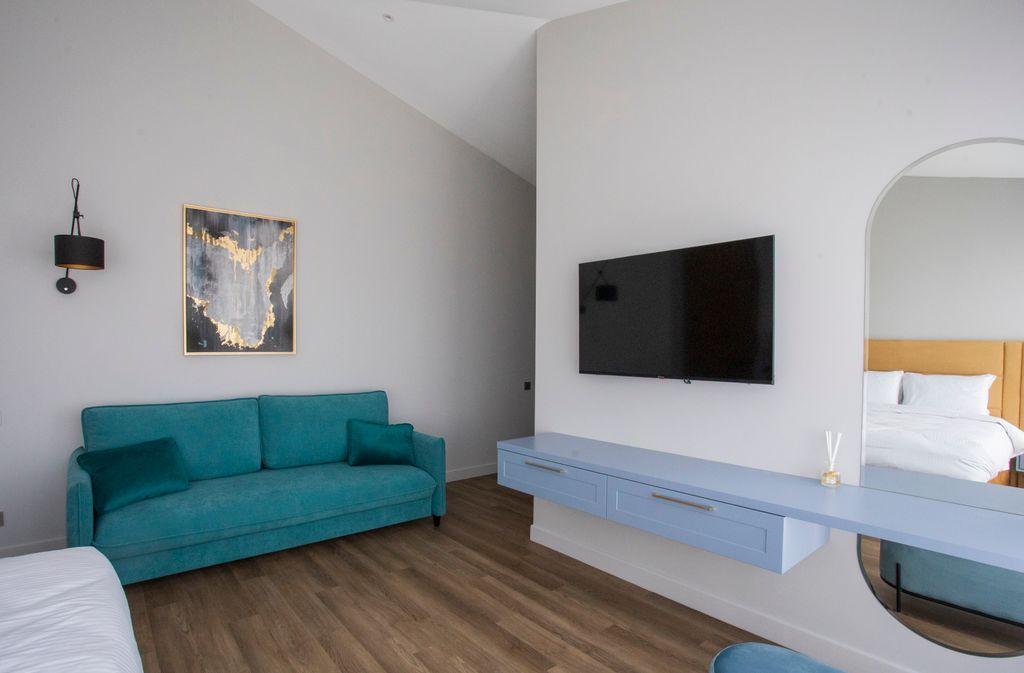В отеле 128 номеров разных категорий: от уютных 18-метровых номеров «стандарт» до роскошных апартаментов 220 кв. м с террасой. В 2019 году были отремонтированы корпуса а и b, в 2021 году — корпус с и главный ресторан, в 2025 году построен новый корпус d. Территория оборудована пандусами, что делает более комфортным отдых маломобильных гостей. Корпуса a, b и c оснащены лифтами, корпус d для проживания инвалидов не подходит. Среди главных достоинств: зелёная ухоженная территория, чистый и тёплый бассейн, бесплатная детская площадка, летние анимационные программы, кафе, ресторан, сауна, спа-комплекс и частная парковка.