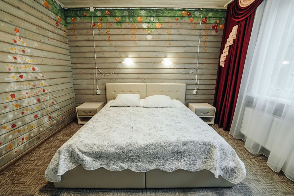 На территории гостиничного комплекса расположено 12 теремов, разных по комфортабельности, категории, классности и количеству проживающих. Это комфортабельные терема из натурального дерева, оборудованные кухнями, удобными номерами с бесплатным Wi-Fi — интернетом. В гостиничном комплексе действуют специальные тарифы и разработана гибкая система скидок. Наряду с проживанием мы предлагаем ряд дополнительных услуг, делающих ваш отдых на вотчине Деда Мороза максимально комфортным: бесплатная охраняемая автостоянка, комплекс северных бань, комплекс кафе и ресторанов «Снежинка», программы туров по вотчине и городу Великий Устюг.