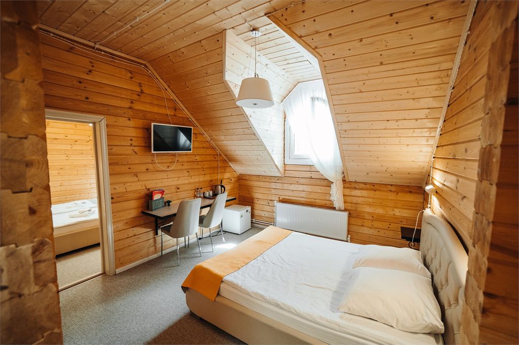 На территории гостиничного комплекса расположено 12 теремов, разных по комфортабельности, категории, классности и количеству проживающих. Это комфортабельные терема из натурального дерева, оборудованные кухнями, удобными номерами с бесплатным Wi-Fi — интернетом. В гостиничном комплексе действуют специальные тарифы и разработана гибкая система скидок. Наряду с проживанием мы предлагаем ряд дополнительных услуг, делающих ваш отдых на вотчине Деда Мороза максимально комфортным: бесплатная охраняемая автостоянка, комплекс северных бань, комплекс кафе и ресторанов «Снежинка», программы туров по вотчине и городу Великий Устюг.