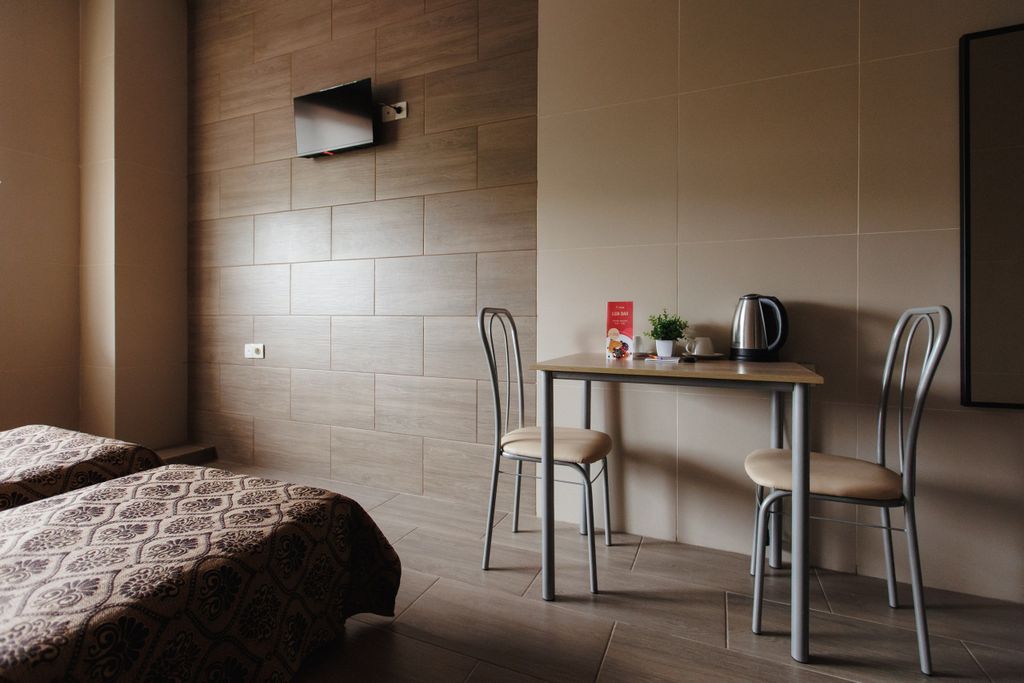 Для гостей доступны 22 стандартных номера и 2 улучшенных люкса, которые отличаются повышенным комфортом и более просторным интерьером. В каждом номере есть бесплатный wi-fi, телевизор, кондиционер, фен и полотенца. Стоимость проживания начинается от 4000 ₽ в сутки, а для длительного размещения предусмотрены выгодные условия – при проживании от двух месяцев цена снижается. Дополнительно гости могут посещать бассейн всего за 200 ₽ и заниматься в спортивном зале за 400 ₽ за сеанс.