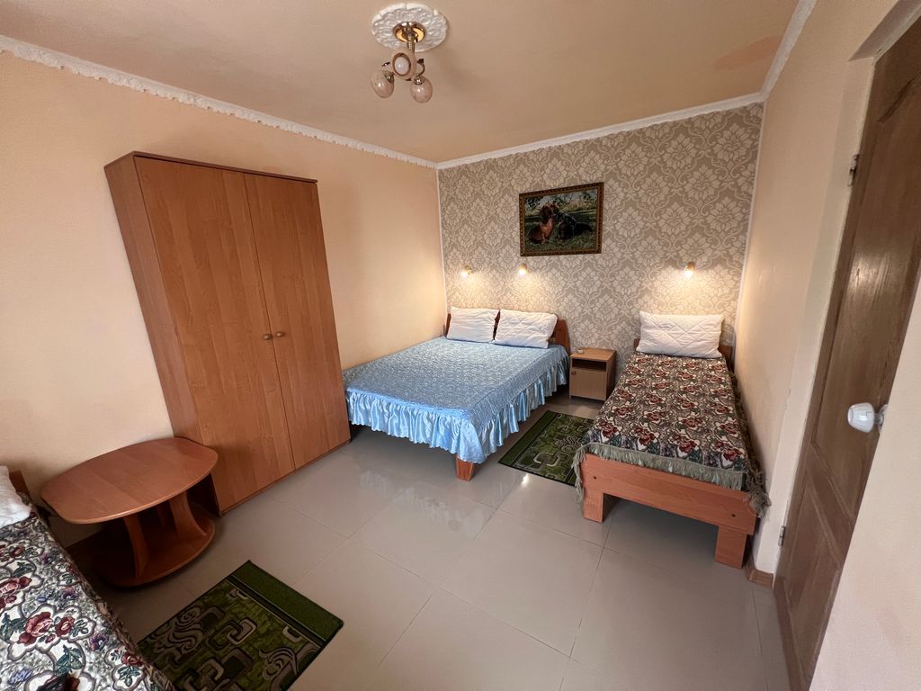 Вас ждут огороженный зеленый дворик, где можно посидеть за столиком в беседке, посмотреть телевизор. Рядом находится рынок, магазины, кафе, кинотеатр. В 300 метрах находится лечебный лиман, лечебные грязи. Удобный приятный отдых в самом чистом море и большим широким песочным пляжем.