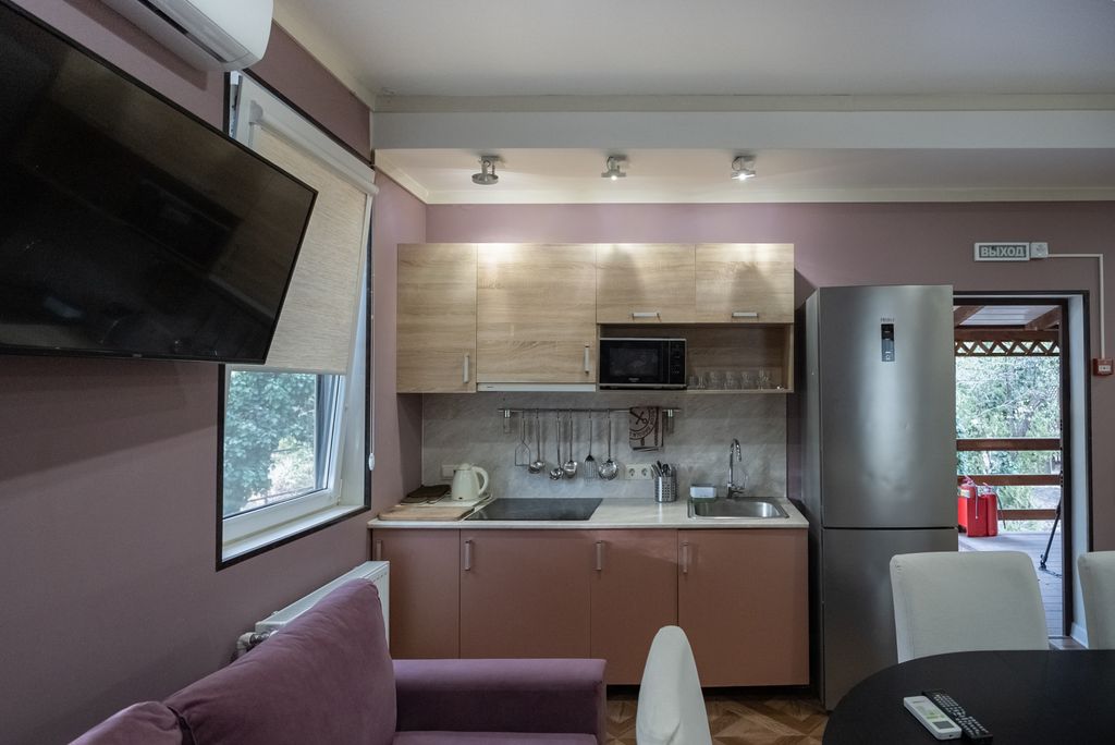 Парк-отель «Поляна» в Дивноморске: Уединённый отдых у леса и моря круглый год Расположен в живописном посёлке Дивноморское, в тихой лесной зоне на берегу реки Мезыбь. Центральная набережная и главный пляж — в 15–20 минутах спокойной прогулки. Инфраструктура посёлка (магазины, кафе) доступна в 10-15 минутах ходьбы. Размещение: Уютные коттеджи на 4–6 человек и номера различных категорий: стандарт, комфорт, люкс и виллы. Каждый коттедж имеет площадку для барбекю и мини-террасу. Все номера оформлены в современном стиле — идеально для семейного и дружеского отдыха. В коттеджах и виллах: кухня, обеденная зона, кулер, сплит-система, телевизор, санузел, бесперебойная подача воды. Инфраструктура отеля: Сезонный открытый бассейн (16×8 м) — доступен в летний период Просторная парковка на территории под видеонаблюдением Уютные беседки для отдыха на свежем воздухе А также Русская баня на дровах В летний период дополнительно работают: - Летняя общая кухня с посудой и холодильниками - Чилаут-зоны
