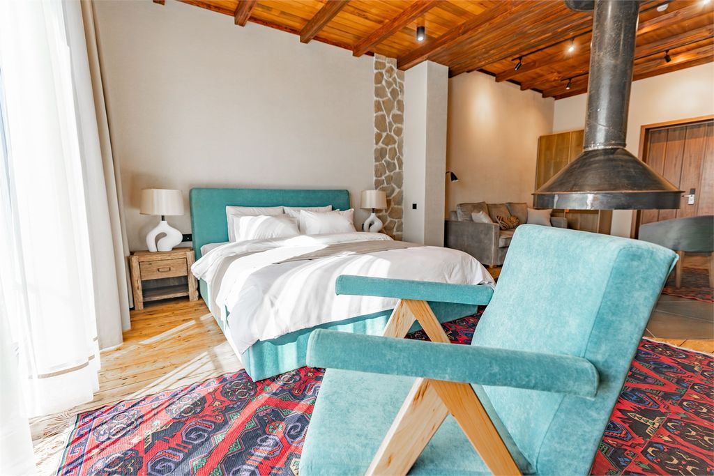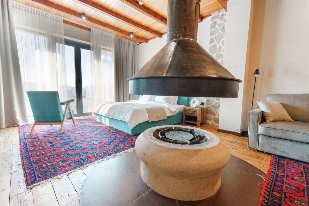 Чох Россо — Двухместный номер с 1 кроватью Люкс с камином(декор) с французским балконом с видом на аул Гамсутль