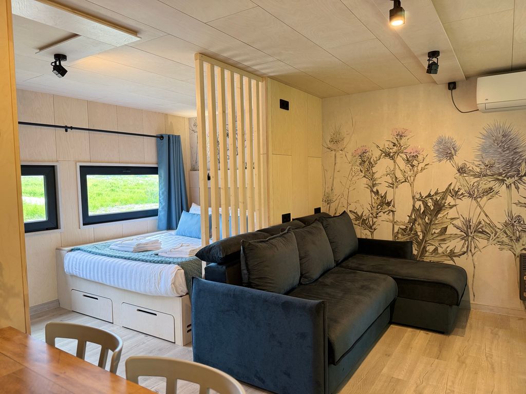 Десять современных модульных домиков уютно расположились на извилистом берегу реки тохмайоки. Домики идеально подходят для спокойного отдыха вдали от города на лоне прекрасной карельской природы. Территория деревни составляет около 16 гектар, по ней проложены удобные дорожки и протоптаны тропинки. Тут можно собирать грибы и ягоды, рыбачить, и просто гулять в лесу. Мы составили карту маршрутов разной протяженности - можно бродить пешком, можно покататься с детьми на велосипеде, а можно бегать или заняться скандинавской ходьбой. Все необходимое мы с радостью предложим в нашем прокате. Также в прокате всегда есть большой выбор увлекательных настольных игр для семьи или дружной компании. По вечерам мы можно разжигать костер в безопасных чашах. Можно расположиться рядом в удобных креслах с бокалом вина, слушать, как потрескивают поленья и наблюдать, как искры медленно поднимаются к звездному небу. Зимой можно покататься на лыжах, скатиться с горки на тьюбингах. Мы также организовываем каре