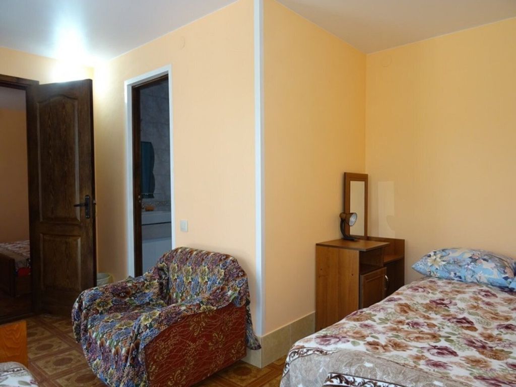 Гостевой дом расположен в с. Песчаное. Для гостей курорта в поселке работают бары, дискотеки, рестораны, кафе, бильярдные, обменные пункты, спортплощадки, почта, переговорные пункты. Гостевой дом находится рядом с магазинами, рынком, автостанцией. К морю 5-15 мин ходьбы. Большой зеленый двор с местами для отдыха(беседки, качели), автостоянкой и мангалом, ТВ и Wi-Fi, кухнями(3) оборудованными всем необходимым для самостоятельного приготовления пищи. Горячая и холодная вода круглосуточно. Комнаты от 2-х до 4-х человек. Имеется 3 люкса(ТВ, кухня на 3 люкса , кондиционер). Цена проживания в зависимости от месяца отдыха. Имеется очень хорошая детская площадка на пляже.