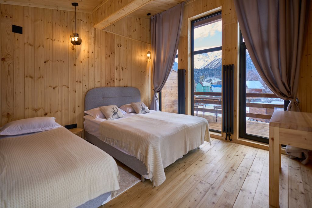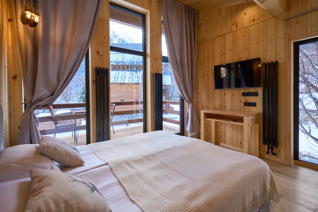 Приглашаем гостей в наш маленький обновленный отель в самом сердце горнолыжного курорта Домбай! У нас: - все в дереве! - 5 минут пешком до канатной дороги - кафе на территории - бесплатная парковка на территории - лыжехранилище - общая зона отдыха - мангал В номерах: - виды на горы из всех окон! - все удобства, в том числе: вай-фай, тв, фен, полотенца, косметические принадлежности, кружки, чай. В коридоре кулер с горячей и холодной водой. - Баня с холодными купелями и горячий чан на территории