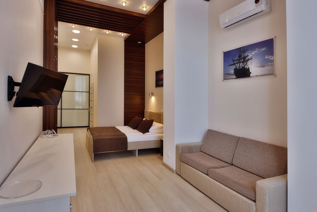 Отель расположен в одной из лучших частей города Геленджика, на центральной набережной. До моря недалёко, всего 50 метров. Создавалось здание отеля по последним веяниям, основываясь на европейских технологиях. Четырнадцать современных номеров оборудованы всеми удобствами, чтобы наши отдыхающие чувствовали себя комфортно. В каждом номере, будь то стандарт или люкс, есть телевизор, сплит-система, сейф, мини-бар, а также ванная комната с туалетом. Номер будет убираться нашим персоналом ежедневно, бельё меняется раз в пять дней. В центр города за покупками или для прогулки можно добраться за 10 – 20 минут. Рядом с отелем есть автостоянка. Кстати, о детях. Для тех наших клиентов, у кого есть ребенок до 3-х лет, хорошая новость. За ваше чадо платить не придется, при условии, если он проживает с вами, без дополнительного места. Отель «Корсар», несмотря на свою компактность, полностью удовлетворит потребности даже самых требовательных гостей. Удобное месторасположение, близость к морю, хор