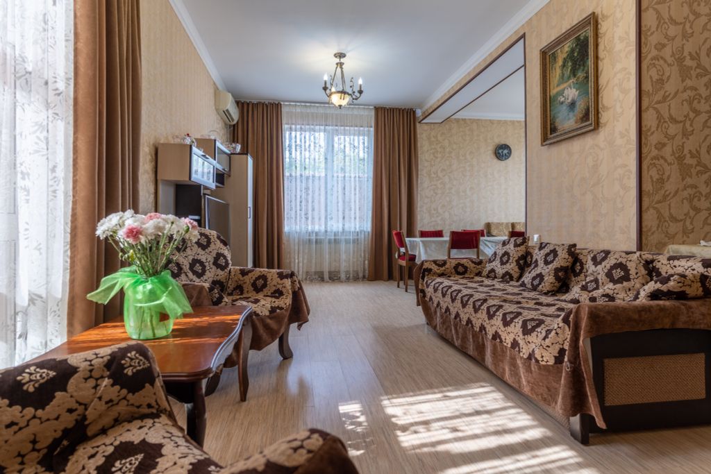 ГД расположен в тихом спокойном месте, в олимпийском парке. В 8 минутах ходьбы от моря. Вся инфраструктура в шаговой доступности - остановка общественного транспорта, аптека, магазины, кафе, бары, детский парк аттракционов, сочи парк, прокат велосипедов и самокатов. 22 номера с кондиционером, wi-fi и tv. Есть общая кухня, зона барбекю и детская площадка. Идеально для семейного отдыха: ровная дорога к морю, шезлонги и тенистые навесы на пляже. Ваш комфортный отпуск начинается здесь!