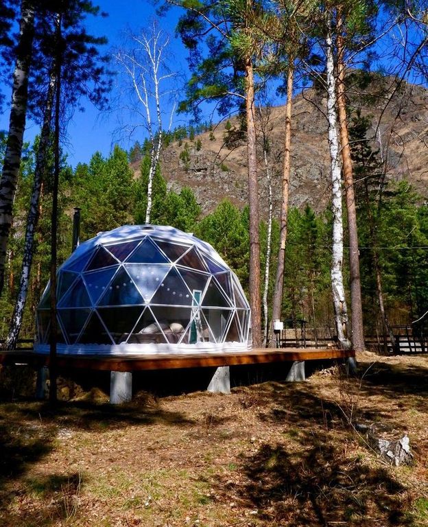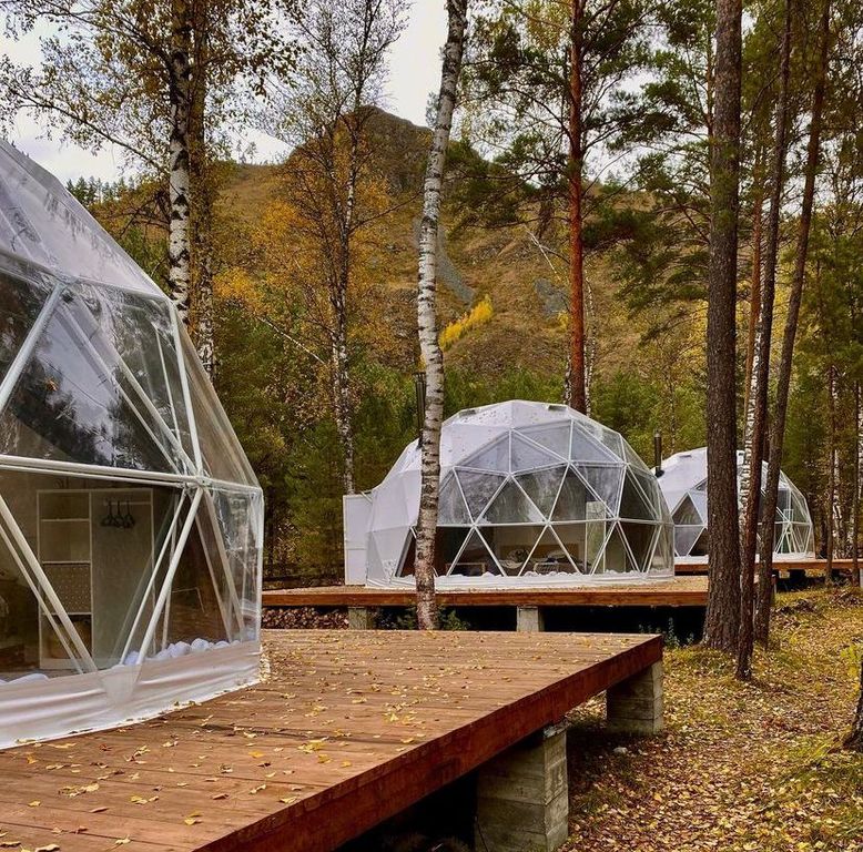 Купольные дома-сферы Комфортные деревянные домики Отдых в сосновом лесу на берегу горной реки Активный отдых, экскурсии Уединение с природой