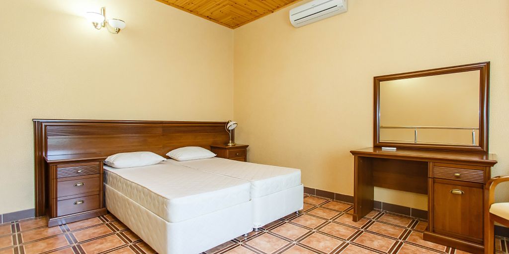 Работает по системе all inclusive с алкогольными напитками, 4-разовым питанием и шведским столом! Что на территории включено в тариф: - 2 бассейна (детский и взрослый с подогревом) - Анимация и шоу - Зона отдыха у бассейна с шезлонгами - Лаундж-зона для отдыха со столиками у бассейна - Бар с освежающими напитками у бассейна - Обновленное меню системы «all inclusive» (шведский стол + алко) - Детский уголок, площадка с игрушками и развивающими играми - Уютные номера со всеми удобствами - Авторский ресторан «Кавказская пленница»
