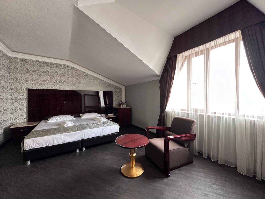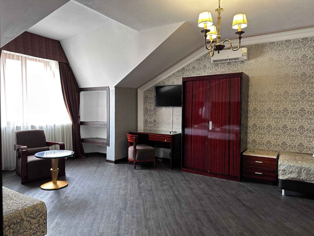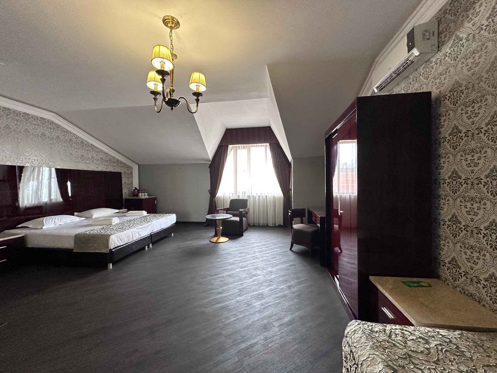 Отель расположен в курортном районе Махачкалы, всего в 1000 метрах от Каспийского моря и пляжа. Наш район отличается тишиной и наличием всей необходимой городской инфраструктуры в шаговой доступности, при этом до центра города всего 8 км. Современное здание отеля и его закрытый двор выполнены из натурального камня различных сортов, в оформлении присутствует ковка, а цветовое решение радует глаз и создает уют. Во дворе отеля располагается просторный банкетный зал на 50 посадочных мест для ваших торжеств, этно ресторан с широким ассортиментом блюд кавказской кухни для комплексного питания, застолий и просто приятного времяпровождения. В сердце двора стоит авторская барбекю станция - большой мангал где можно готовить шашлык, плов и чай, а также запекать блюда в духовке на углях, воспользоваться которым может любой гость нашего отеля. 12 однокомнатных и двухкомнатных номеров от 17 до 48 м2 для размещения от 1 до 6 человек. Все номера имеют дизайнерскую отделку, современную стильную и комфо