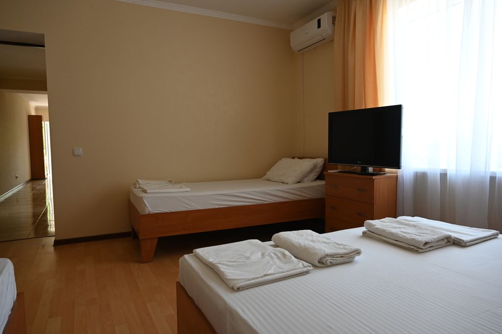 Гостевой дом "Григорий" Просторные комфортные номера для семейного отдыха. Расстояния: - Пляж песчаный - 5 минут - Пляж галечный - 2 минуты - Набережная - 3 минуты - Центр - 4 минуты - Дельфинарий - 15 минут (на авто) - Аквапарк - 15 минут (на авто) - Рынок - 4 минуты - Магазин продукты - 1 минута