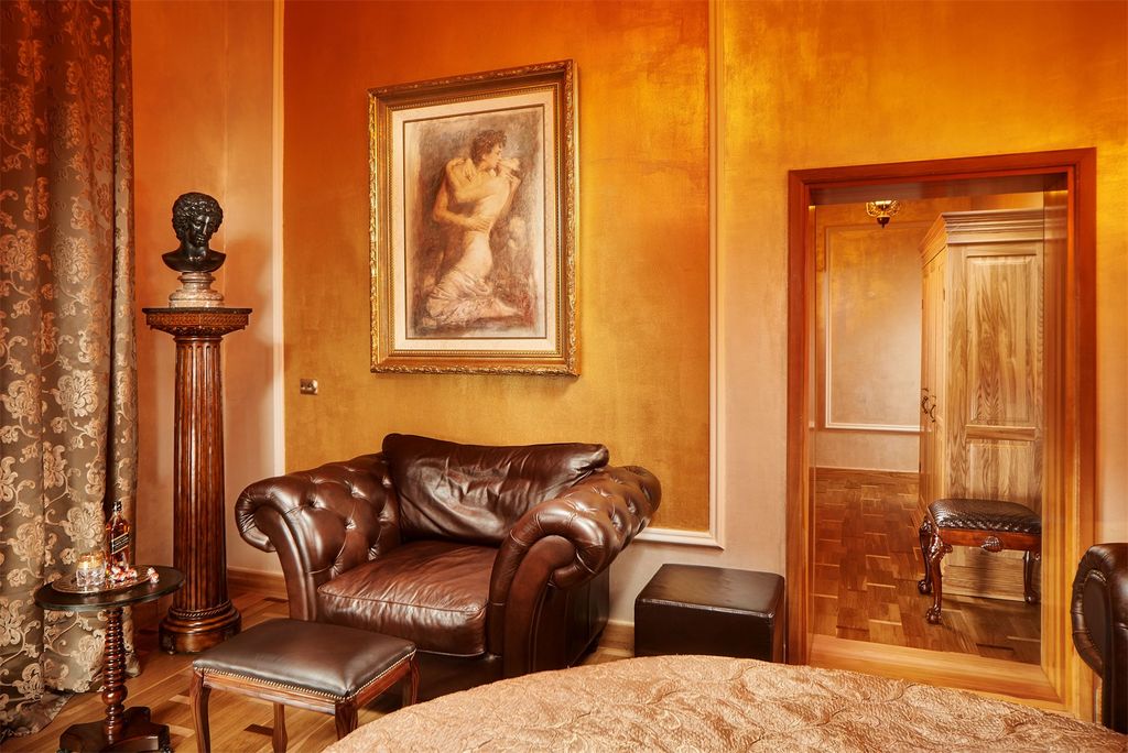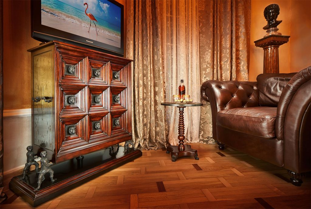 Блеск и отчаянное желание наслаждаться жизнью, интерьеры в духе фильма "Великий Гэтсби" изысканность и общее ощущение праздника - все это Art Deco. Отделка и меблировка некоторых апартаментов, превышает 10 000 000 руб. В 2021 произведен ремонт и заменена мебель. Все апартаменты выдержаны в индивидуальном классическом стиле с использованием благородных пород дерева (дуб, красное дерево, карельская береза,) мрамора и гранита. В оформлении апартаментов использована мебель и аксессуары, в стиле Art Deco,- Maitland Smith,Theodore Alexander, также здесь представлена коллекция антикварной мебели и аксессуаров, которые предают нотки средневекового романтизма. Убранство апартаментов дополняется роскошными люстрами, торшерами и бра фирмы Swarovski, которые сочетаются с гипсовой лепниной и высотой потолка достигающей четырех метров. Межкомнатные двери изготовлены из ясеня , полы паркет, из дуба и красного дерева. Матрасы с эффектом памяти, в качестве наполнителя отличаются повышенным ур