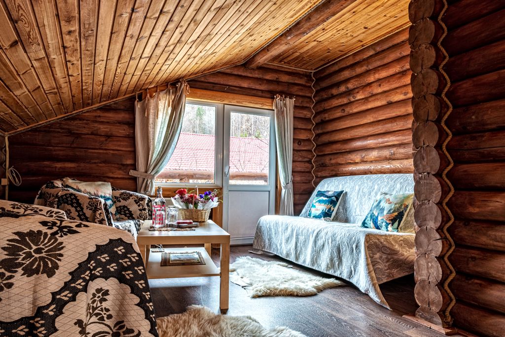 Альпийское Эхо - эко отель в горах Алтая — Четырёхместный номер семейный двухкомнатный люкс с видом на горы и реку