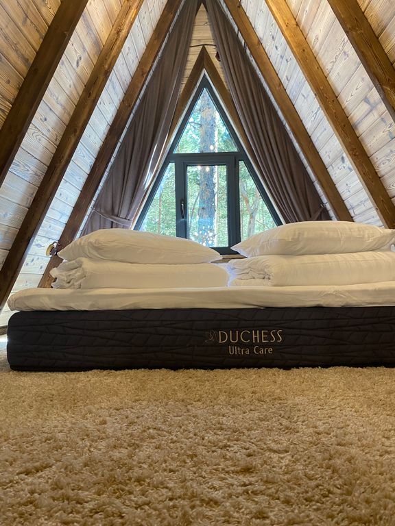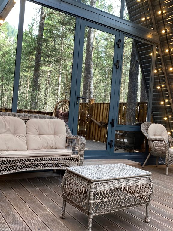 Добро пожаловать в наши уютные домики, где вас ждет незабываемый отдых в окружении природы! В Shale A-travel мы предлагаем для аренды 6 уютных домиков в стиле A-frame, созданных для вашего комфортного отдыха. Среди них два роскошных VIP-дома с джакузи на четыре гостя, каждый с собственной приватной террасой для уединенного отдыха. Также в нашем распоряжении имеются два семейных дома на шесть человек, один изысканный премиум дом для четверых и один уютный маленький домик, идеальный для троих человек. Каждый из наших домиков оборудован просторной верандой, где вы сможете отдыхать на уличной мебели, расслабляться в гамаке или качелях, наслаждаясь окружающей природой. Внутри каждого домика вы найдете все необходимое для комфортного проживания: смарт-телевизор, доступ к Wi-Fi, холодильник, микроволновую печь, электрический чайник, фен, а также индивидуальный набор гигиенических средств. В семейных домиках так же есть электроплита. Для вашего развлечения у нас есть настольные игры и книги. В