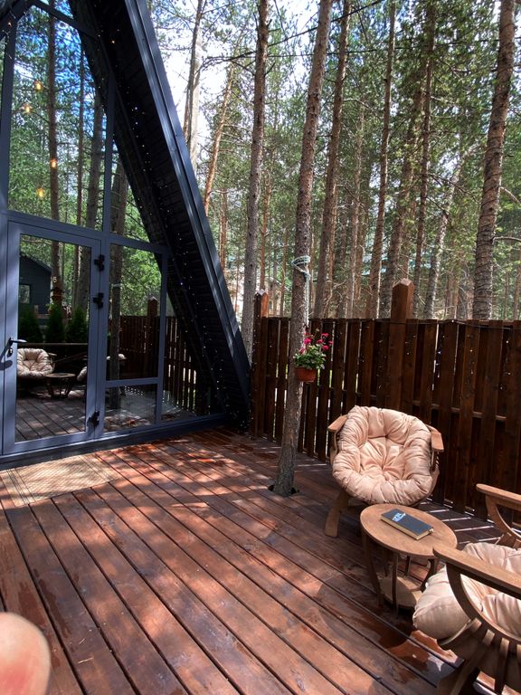 Добро пожаловать в наши уютные домики, где вас ждет незабываемый отдых в окружении природы! В Shale A-travel мы предлагаем для аренды 6 уютных домиков в стиле A-frame, созданных для вашего комфортного отдыха. Среди них два роскошных VIP-дома с джакузи на четыре гостя, каждый с собственной приватной террасой для уединенного отдыха. Также в нашем распоряжении имеются два семейных дома на шесть человек, один изысканный премиум дом для четверых и один уютный маленький домик, идеальный для троих человек. Каждый из наших домиков оборудован просторной верандой, где вы сможете отдыхать на уличной мебели, расслабляться в гамаке или качелях, наслаждаясь окружающей природой. Внутри каждого домика вы найдете все необходимое для комфортного проживания: смарт-телевизор, доступ к Wi-Fi, холодильник, микроволновую печь, электрический чайник, фен, а также индивидуальный набор гигиенических средств. В семейных домиках так же есть электроплита. Для вашего развлечения у нас есть настольные игры и книги. В