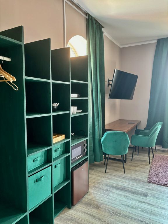 Уютный номер с двухъярусной двуспальной кроватью (на каждом ярусе могут спать по 2 человека. В стоимость входит 2-часовое посещение сауны и подогреваемого бассейна (отдыхает только ваша компания без посторонних). В номере есть кондиционер, современный телевизор, чайник, микроволновая печь, мини-холодильник и минимальный набор посуды и приборов. На кроватях качественные матрасы для хорошего сна. Предоставляются гигиенические принадлежности - шампунь, гель для душа, зубная щетка и паста. Мангал с шампурами и решеткой - бесплатно! Что есть в номере: - две двуспальные кровати (одна над другой) - просторная зона со столом и удобными мягкими креслами - санузел с ванной (совмещенный) - мини-холодильник, телевизор со смарт-тв, wi-fi, микроволновая печь, плита, электрочайник - чашки, бокалы, тарелки, приборы - постельное белье и полотенца - шампунь, гель для душа, мыло Чем еще можно пользоваться бесплатно: - мангальная зона, шампуры, решетка, казан - беседки для загорания с лежаками Дополнител