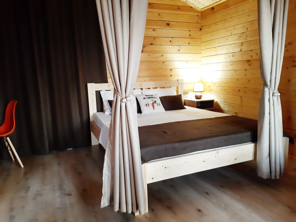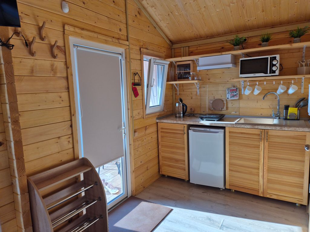 Как минимум 15 причин приехать именно в Домики с бассейном Атмосфера: 1. Индивидуальные деревянные полностью оборудованные домики – не надо везти с собой фен и любимый матрас 2. Автомобильная стоянка под видеонаблюдением для каждой машины гостей – можно приезжать даже на двух 3. Закрытая территория и просторные зоны отдыха – у соседей не проходят пенные вечеринки 4. Удобное расположение – в шаговой доступности рынок, магазин продуктов, столовая, ресторан, батуты, что позволяет вам легко исследовать окрестности пешком 5. До моря всего-то до поворота, а потом по прямой 2 квартала, и вы на песчаном пляже – весь путь по асфальтированной дороге – можно и на машине 6. Бассейн 7,3 м на 3,6 м с шезлонгами для ровного загара 7. Волейбольная площадка для активного отдыха 8. Мангальная зона с гриль-мангалом и печью с казаном – ваши шедевры могут готовиться на углях или дровах 9. Уютная беседка для отдыха из массива ясеня – можно выпить чашечку утреннего кофе или провести вечер за интересной игро